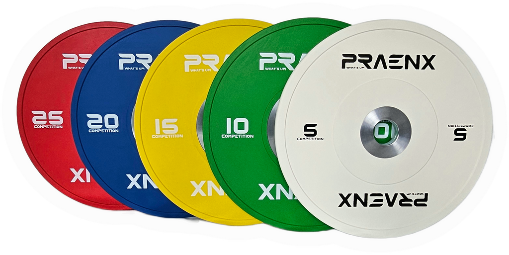 Unsere farbigen PRAENX Competition Bumper Plates aus Gummi wurden für das Powerlifting, Gewichtheben und Functional Training konzipiert.